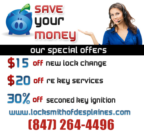 If you are concerned about your locksets and you don’t have too much extra cash lying around, Locksmiths Des Plaines IL has a solution for you. All you have to do is let us know what you need, and we will work to get you the best deal possible. In addition to our low rates, we also have online coupons for you to enjoy.